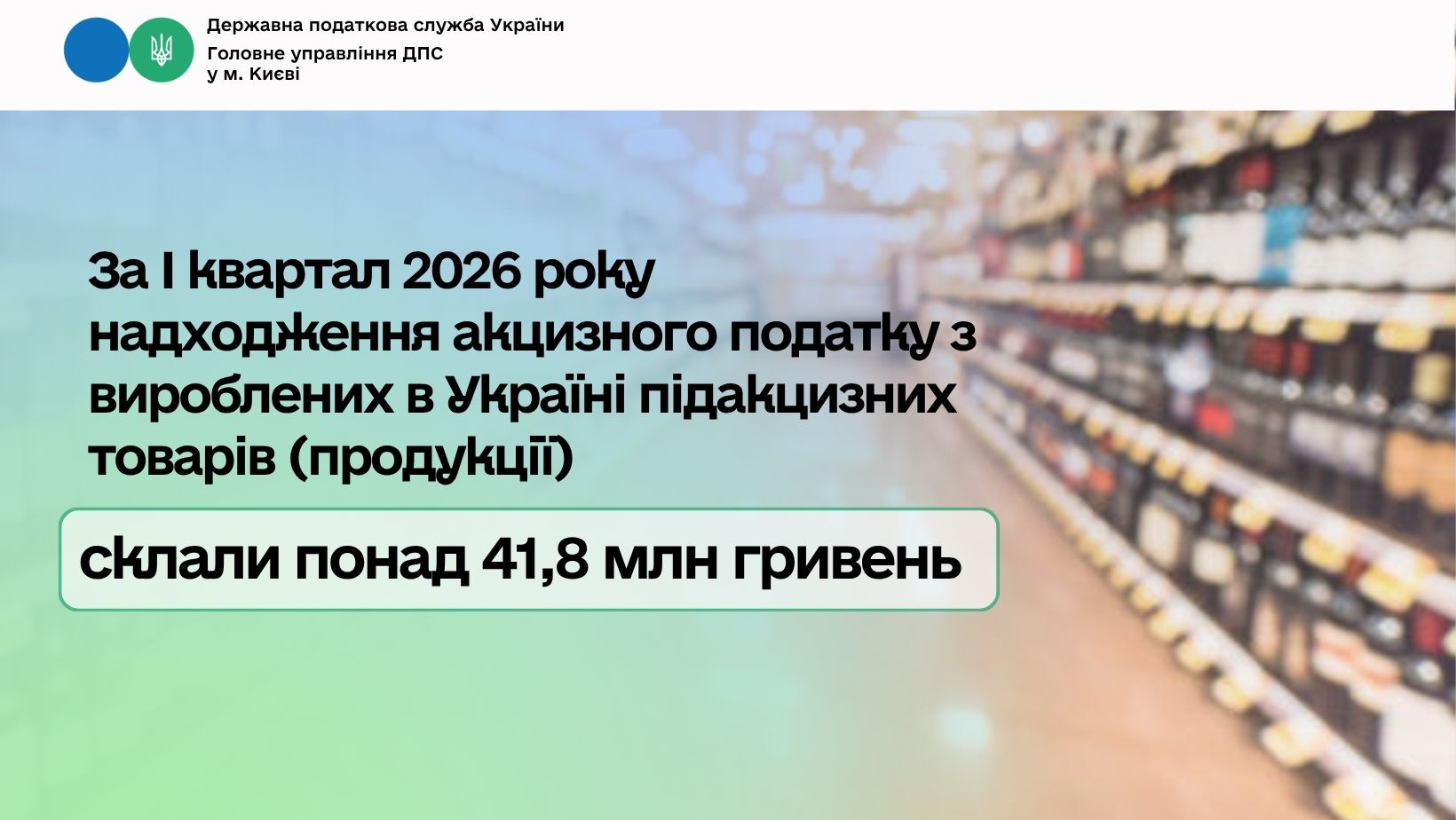 За І квартал 2026 року надходження акцизного податку з вироблених в Україні підакцизних товарів (продукції) склали понад 41,8 млн гривень