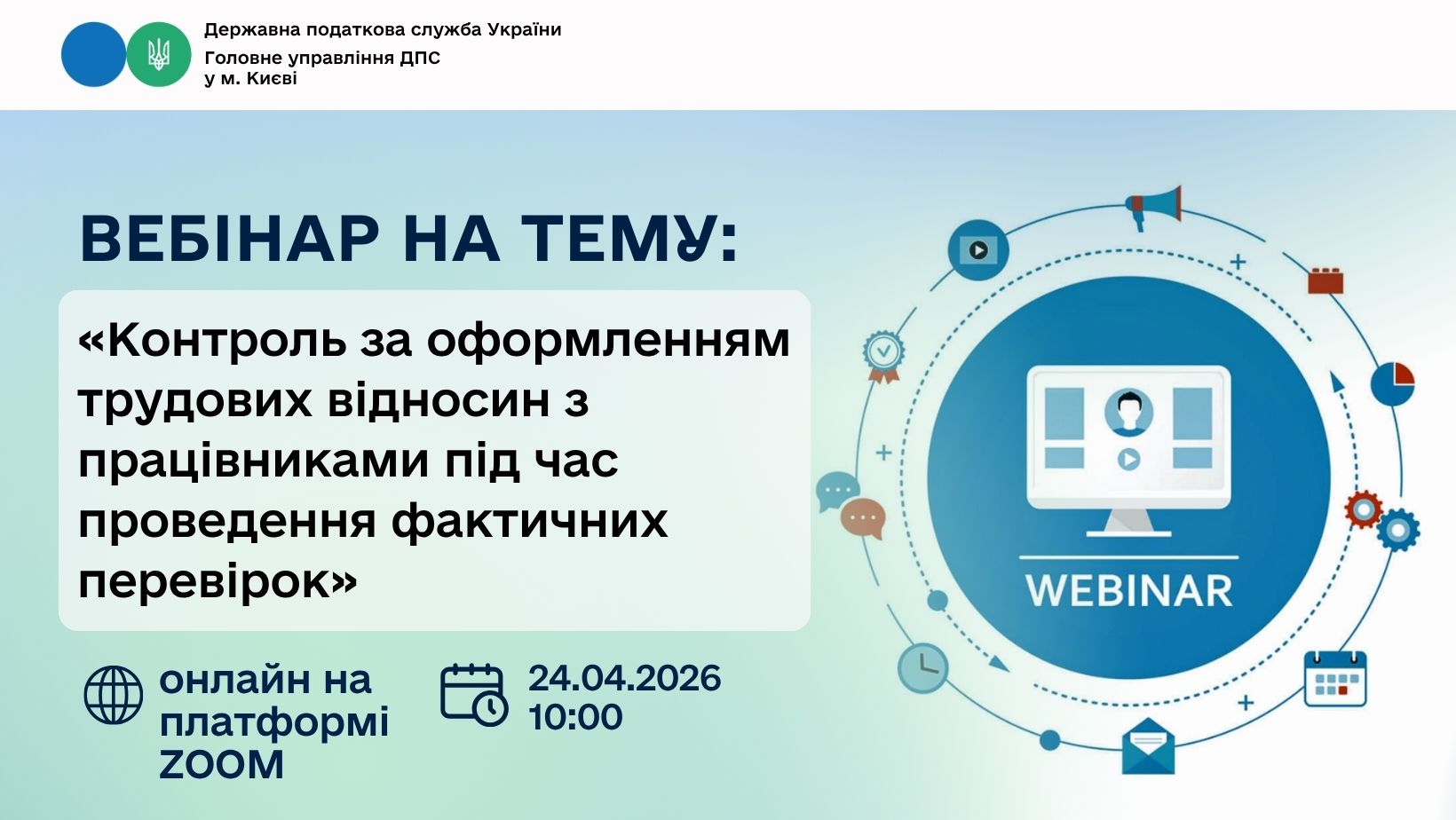 Тема вебінару: «Контроль за оформленням трудових відносин з працівниками під час проведення фактичних перевірок»