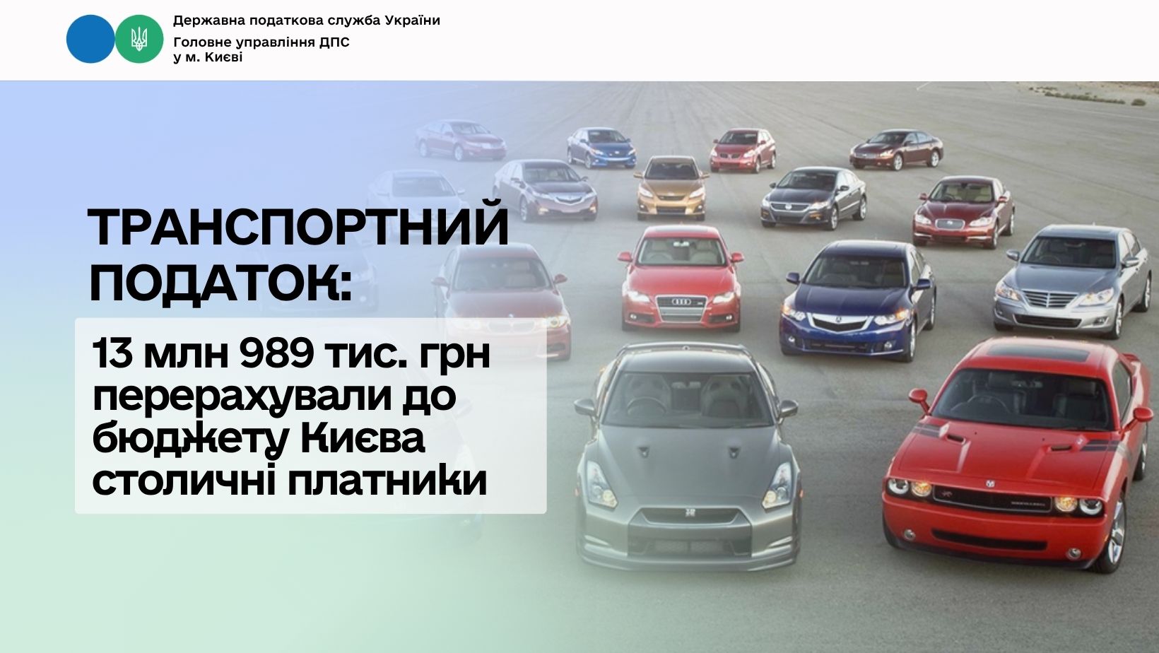 За підсумками січня – березня 2026 року столичні автовласники сплатили до бюджету міста 13 мільйонів 989 тисяч гривень транспортного податку, у тому числі протягом березня – 4 мільйони 420 тисяч гривень.