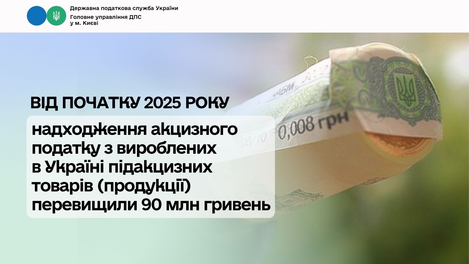 Від початку 2025 року надходження акцизного податку з вироблених в Україні підакцизних товарів (продукції) перевищили 90 млн гривень