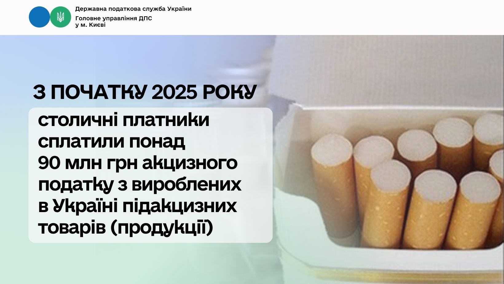 «За період січень – вересень поточного року до державного бюджету надійшло більш ніж 90 млн грн акцизного податку з вироблених в Україні підакцизних товарів (продукції). У вересні 2025 року надходження склали понад 10,4 млн гривень», – розповіла керівник ДПС Києва Інна Якушко.