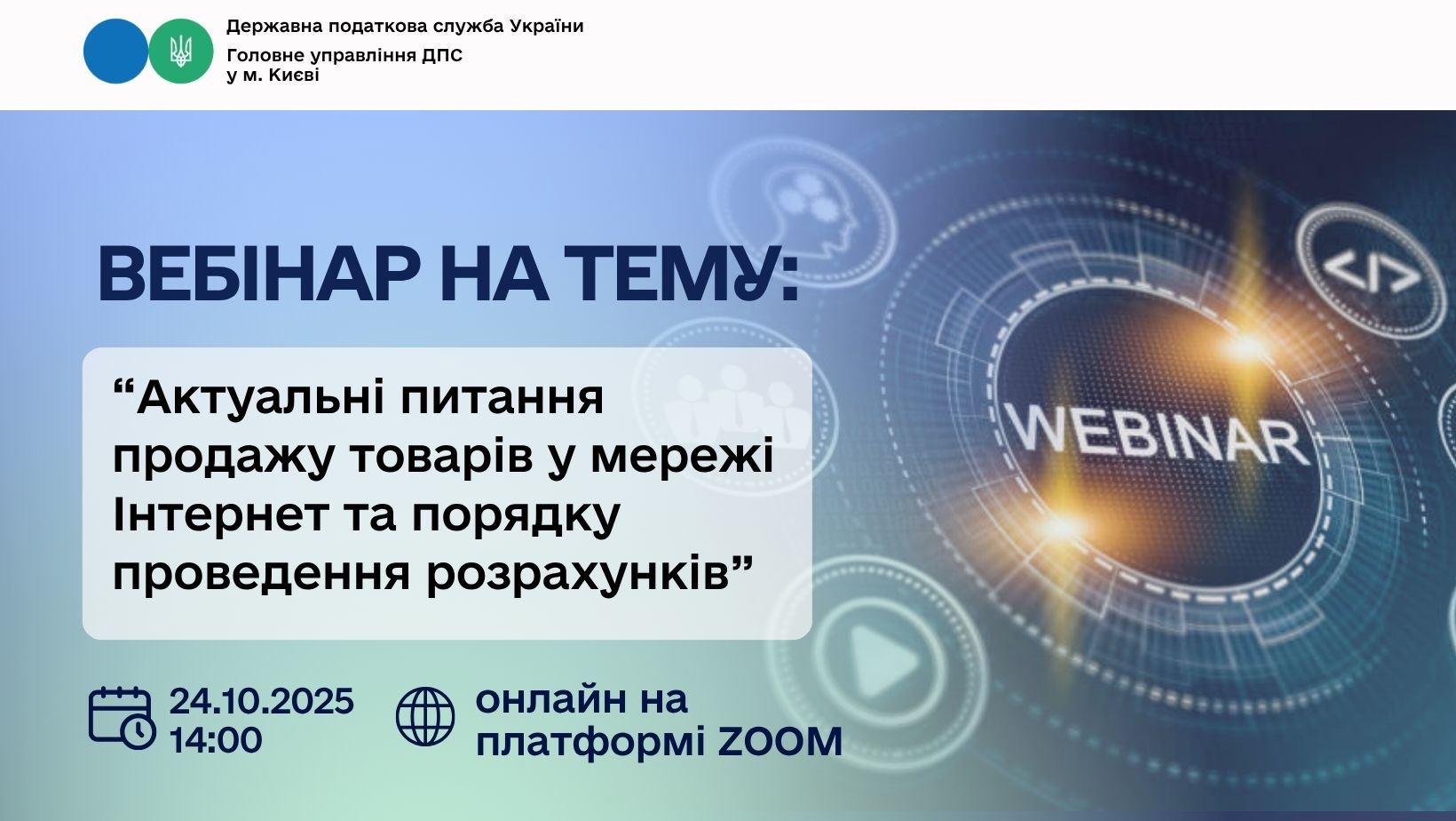 Тема вебінару: «Актуальні питання продажу товарів у мережі Інтернет та порядку проведення розрахунків».