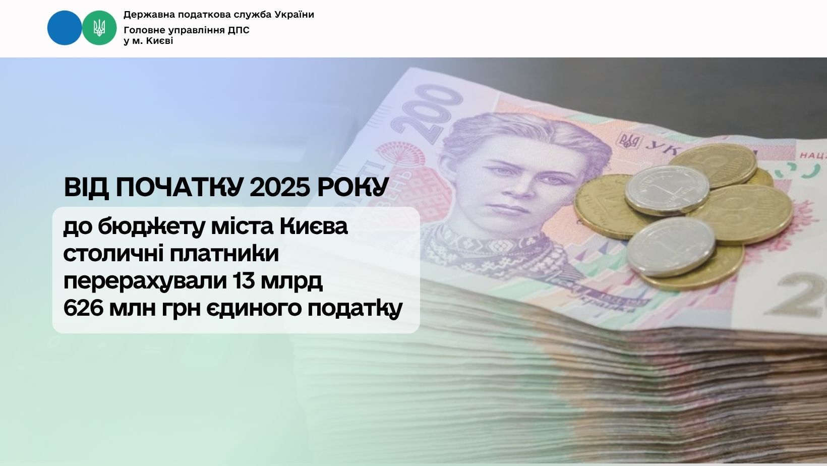 Від початку 2025 року до бюджету міста Києва столичні платники перерахували 13 млрд 626 млн грн єдиного податку