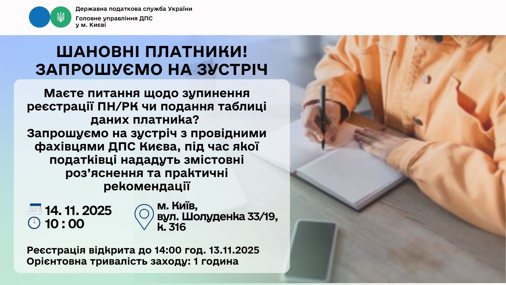 Маєте запитання щодо зупинення реєстрації податкових накладних чи подання таблиці даних платника? Запрошуємо на зустріч з провідними фахівцями ДПС Києва, під час якої податківці нададуть змістовні роз’яснення та практичні рекомендації.