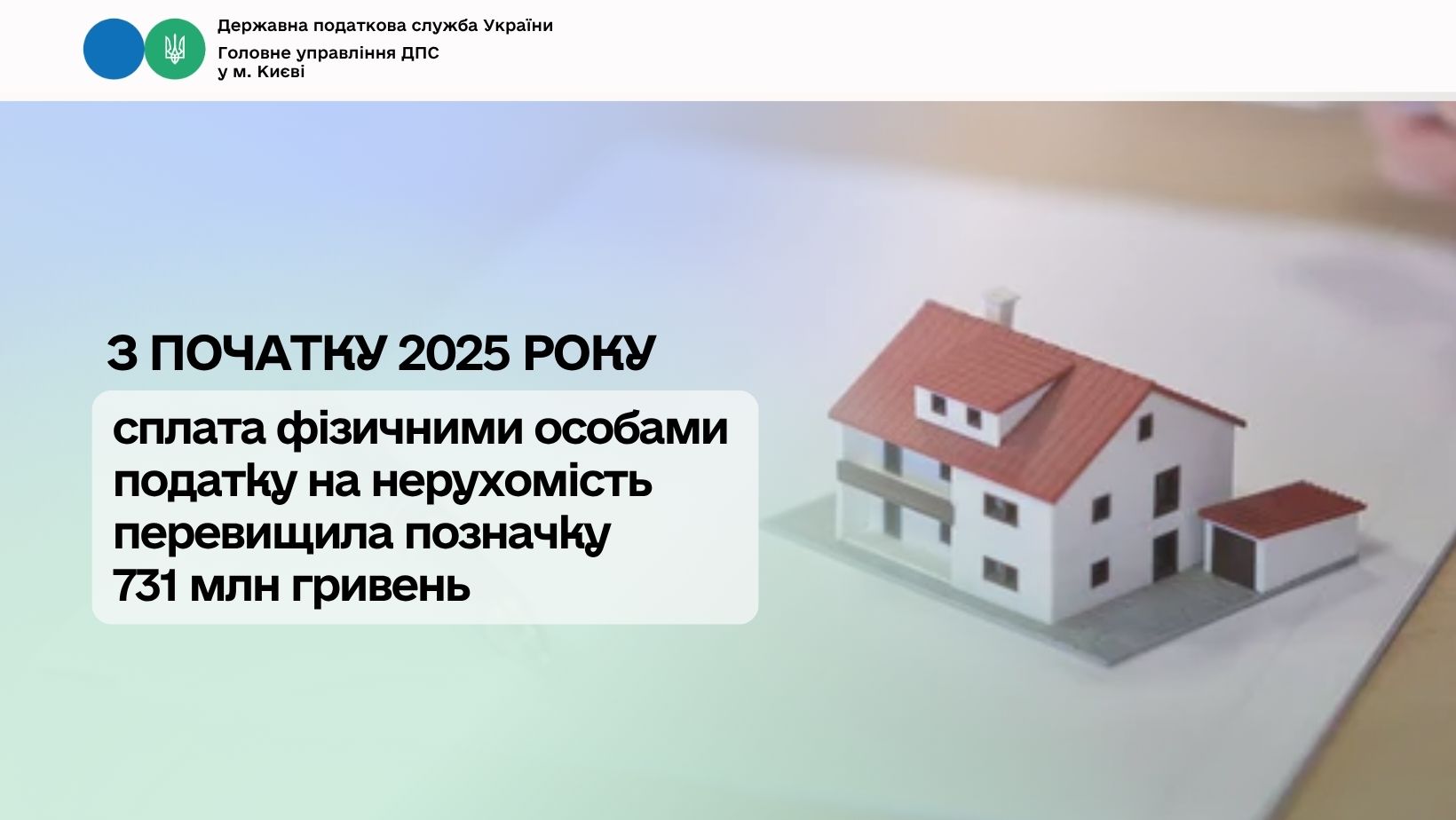 З початку 2025 року сплата фізичними особами податку на нерухомість перевищила позначку 731 млн гривень