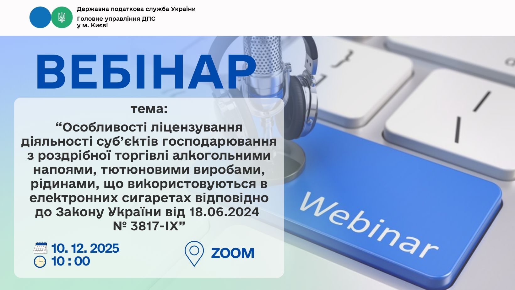 Спікери: У вебінарі візьмуть участь провідні фахівці Головного управління ДПС у м. Києві.