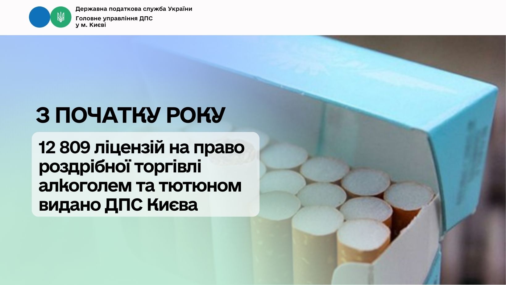 Протягом 11 місяців 2025 року фахівцями податкової Києва видано суб’єктам господарювання столиці 12 809 ліцензій на право роздрібної торгівлі алкогольними напоями та на право роздрібної торгівлі тютюновими виробами. Так, на роздрібний продаж алкогольних напоїв видано – 7 889 ліцензій; на роздрібний продаж тютюнових виробів – 4 920 ліцензій.