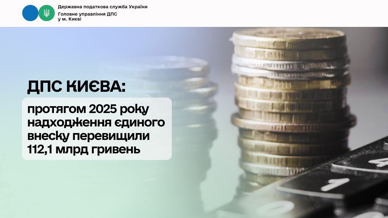 ДПС Києва: протягом 2025 року надходження єдиного внеску перевищили 112,1 млрд гривень