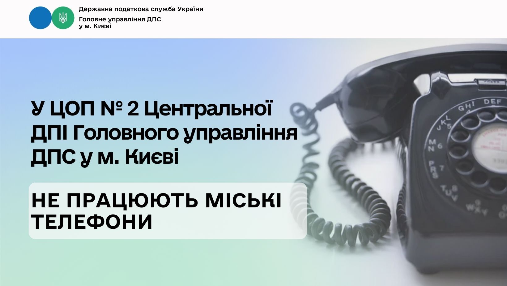 У ЦОП № 2 Центральної ДПІ Головного управління ДПС у м. Києві не працюють міські телефони