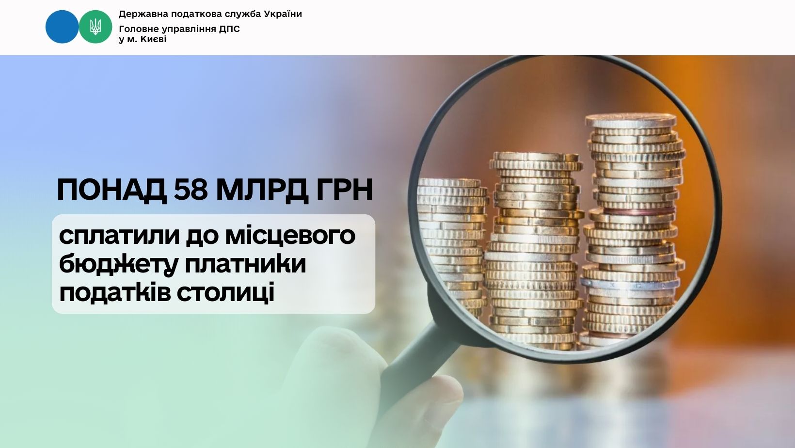 У 2025 році до бюджету міста Києва від столичних платників надійшло 58 млрд 85 млн грн податків, зборів та обов’язкових платежів. Про це повідомила начальник столичного податкового управління Інна Якушко.