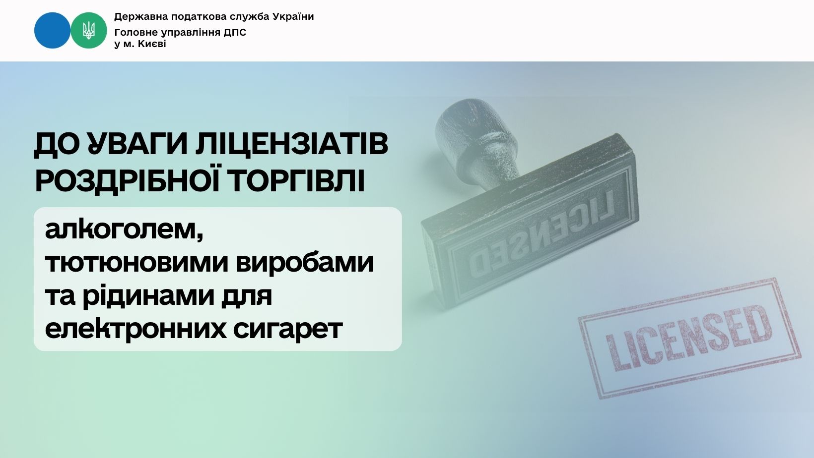 До уваги ліцензіатів роздрібної торгівлі алкоголем, тютюновими виробами та рідинами для електронних сигарет!