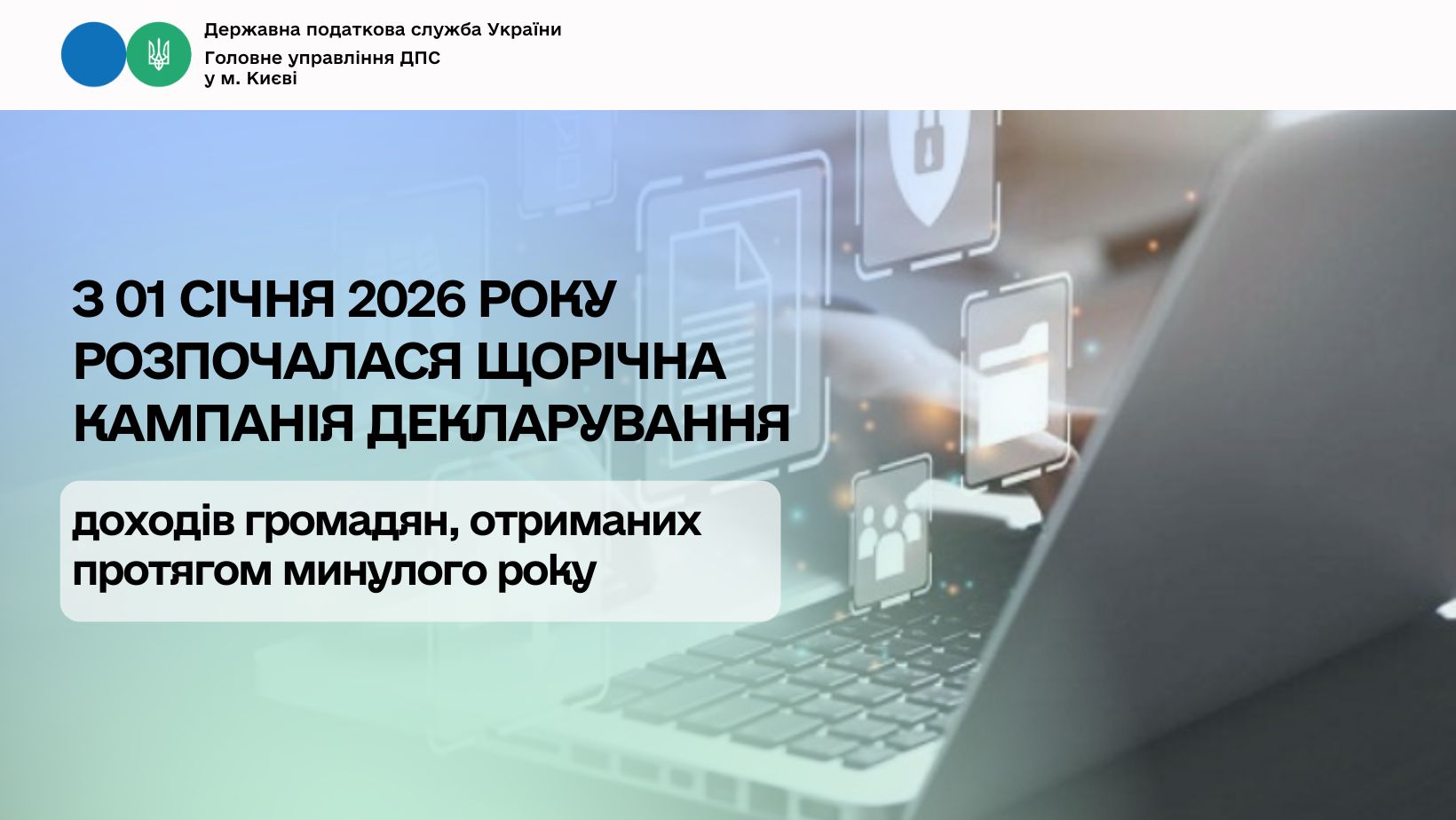 Головне управління ДПС у м. Києві інформує, що з 01 січня 2026 року в Україні розпочалася деклараційна кампанія, під час якої громадяни мають задекларувати доходи, отримані протягом 2025 року.