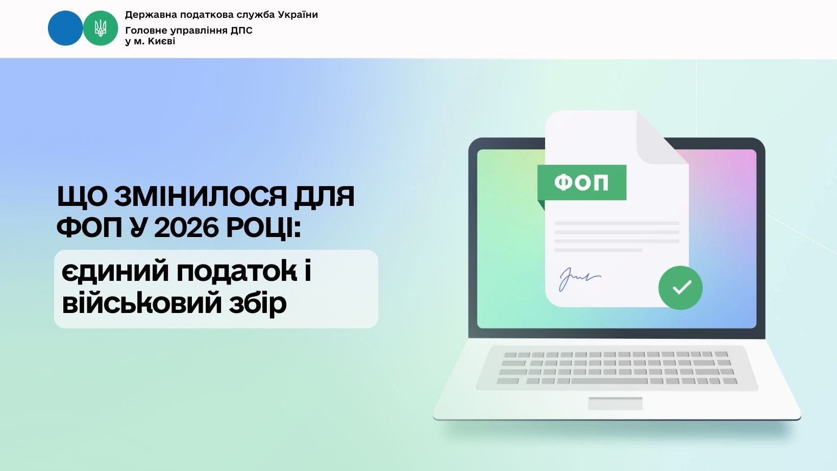 Головне управління ДПС у м. Києві звертає увагу, що з 01 січня 2026 року для фізичних осіб – підприємців, які працюють на першій та другій групах єдиного податку, діятимуть нові розміри ставок єдиного податку та військового збору.