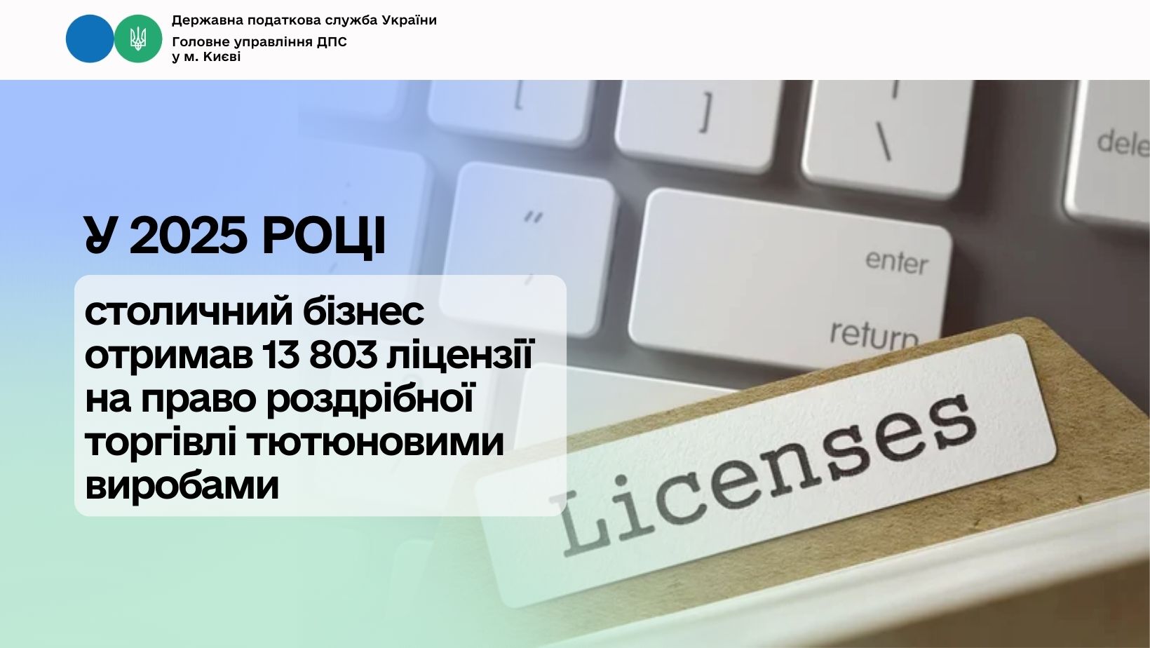Протягом грудня 2025 року столичні підприємці отримали 994 ліцензії, у тому числі: на роздрібну торгівлю алкоголем – 600 ліцензій; на роздрібну торгівлю тютюновими виробами – 394 ліцензії.