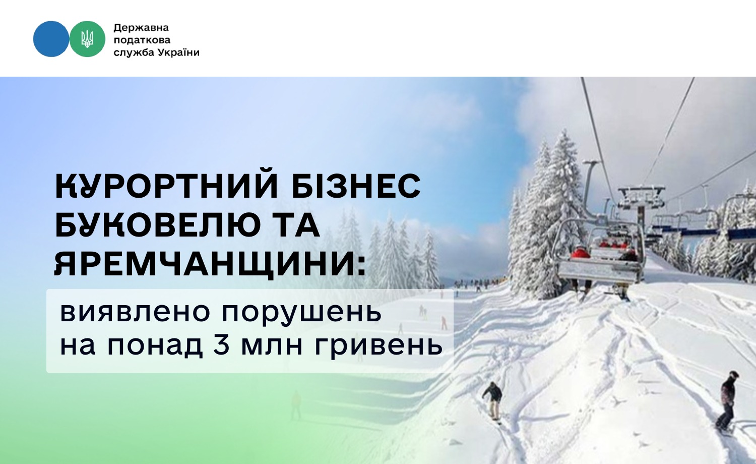 З початку 2026 року в курортній зоні Яремчанщини та на гірськолижному курорті «Буковель» податківці вже зафіксували порушень на 3,2 млн грн. Проведено 62 фактичні перевірки, виявлено 22 неоформлених найманих працівники.