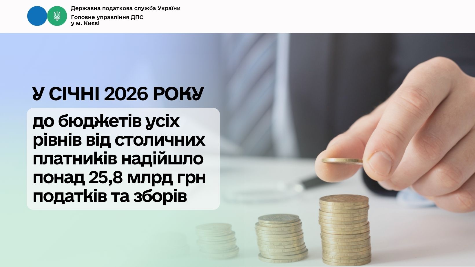 У січні 2026 року до бюджетів усіх рівнів від столичних платників надійшло понад 25,8 млрд грн податків та зборів