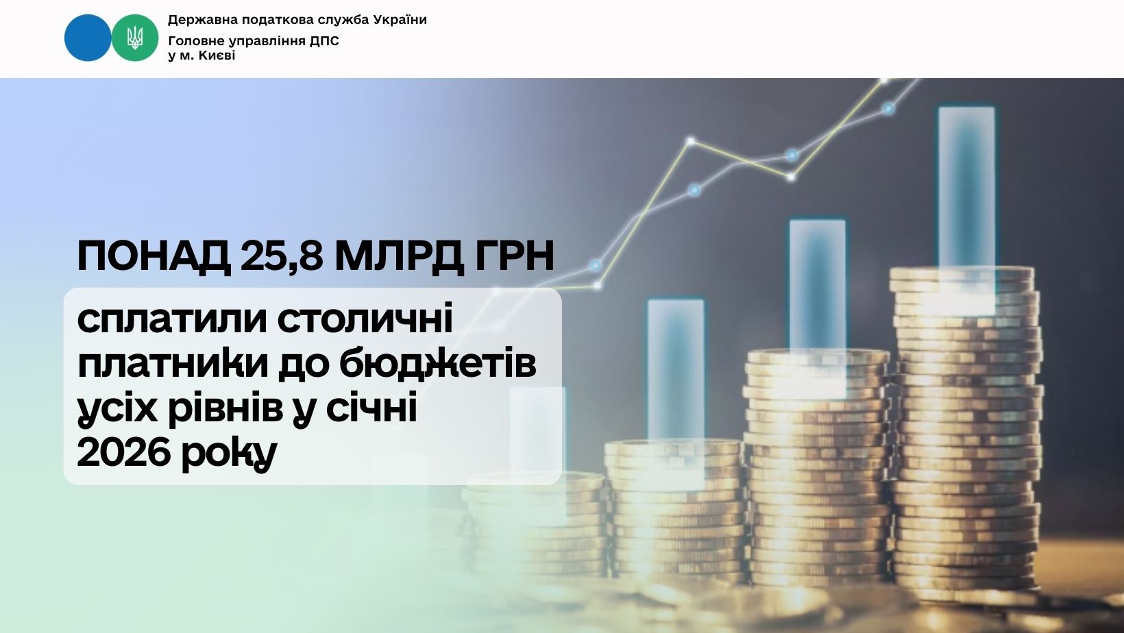 «Столичні платники податків протягом січня 2026 року сплатили до бюджетів усіх рівнів 25 млрд 826 млн гривень. Це на 9 %, або на 2 млрд 34 млн грн більше ніж у січні 2025 року», – про це поінформувала начальник ДПС Києва Інна Якушко.