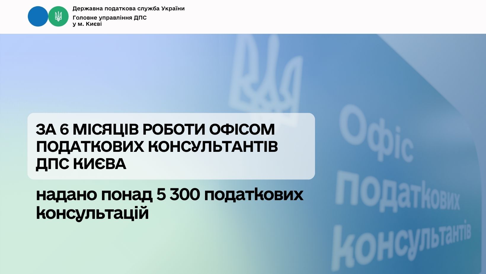 Для надання інформаційної підтримки платникам з вересня минулого року у столиці працює Офіс податкових консультантів. Так, протягом шести місяців роботи фахівці Офісу надали більш ніж 5 300 консультацій.