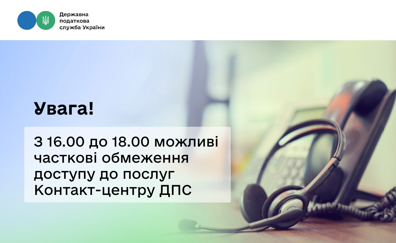 Увага! З 16.00 до 18.00 можливі часткові обмеження доступу до послуг Контакт-центру ДПС
