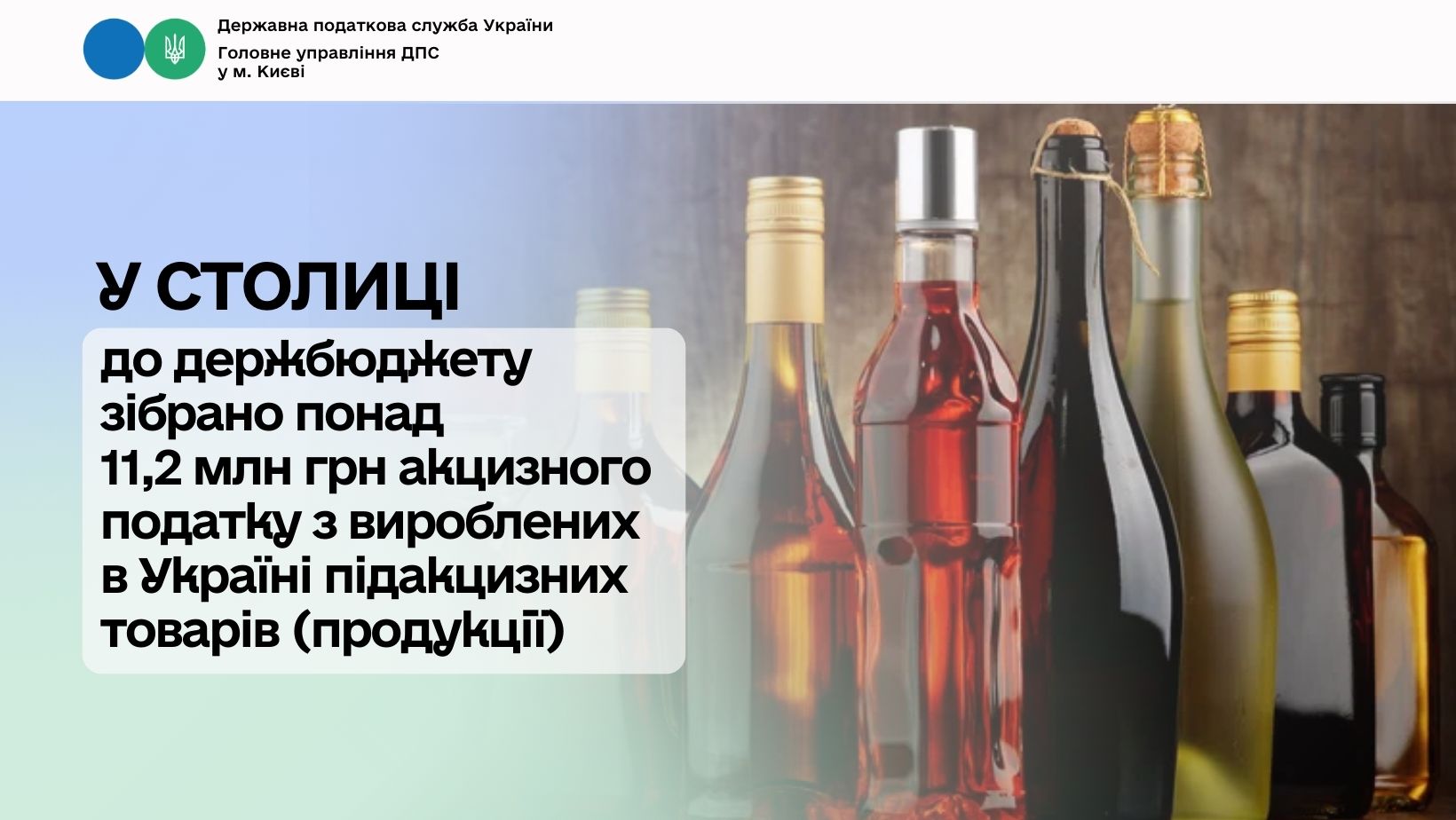 У столиці до держбюджету зібрано понад 11,2 млн грн акцизного податку з вироблених в Україні підакцизних товарів (продукції)