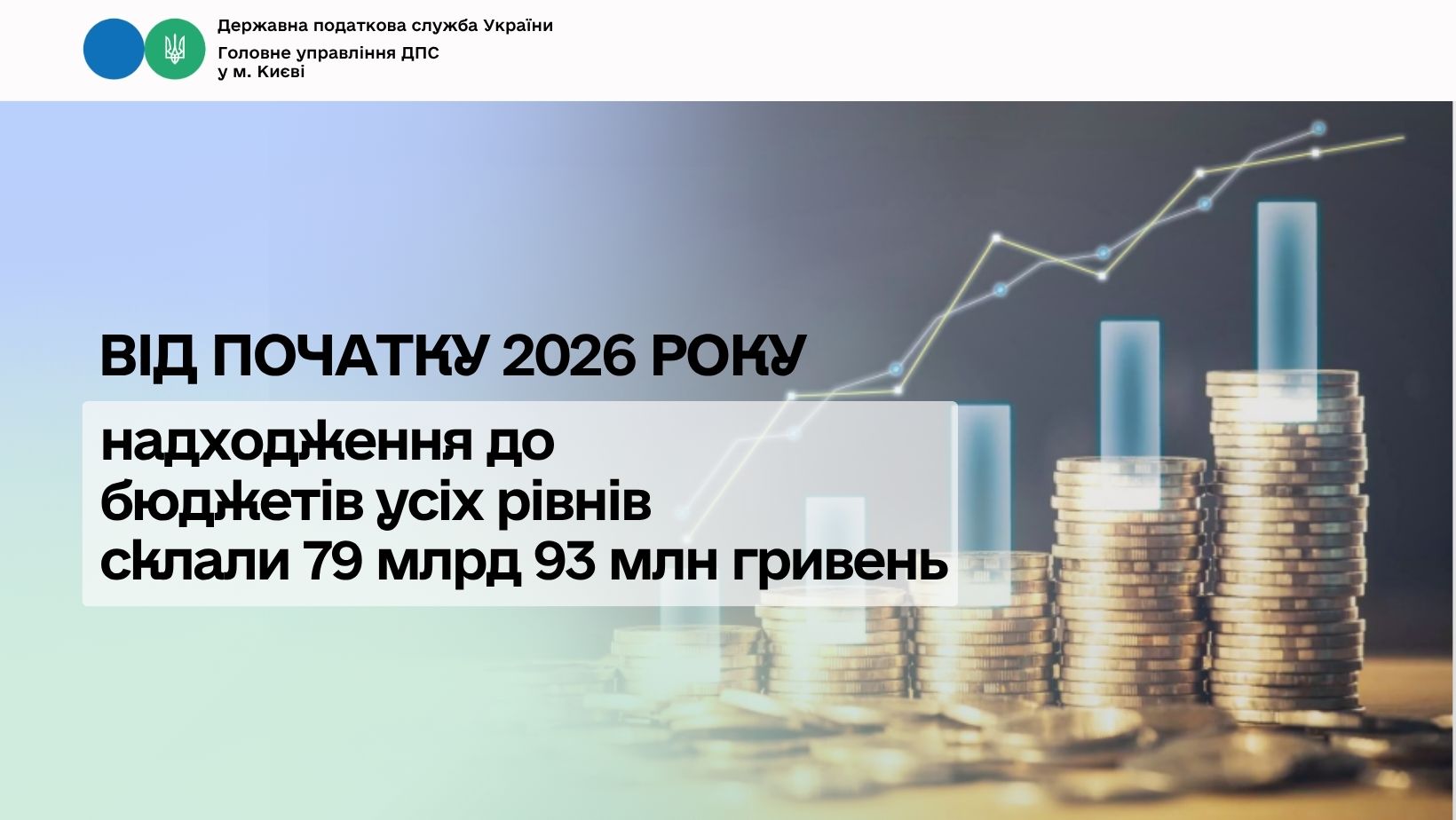 «За підсумками січня – березня 2026 року столичні платники забезпечили стабільну динаміку надходжень до бюджетів усіх рівнів. Загалом надійшло 79 млрд 93 млн грн, що на 16 %, або на 10 млрд 633 млн грн більше, ніж за аналогічний період минулого року», – зазначила начальник Головного управління ДПС у м. Києві Інна Якушко.