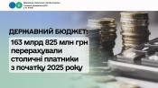 За 9 місяців 2025 року платники податків столиці сплатили до державного бюджету 163 млрд 825 млн гривень. Порівняно з відповідним періодом минулого року – це + 28%, або 35 млрд 498 млн гривень. За січень – вересень 2024 року надійшло 128 млрд 327 млн гривень.