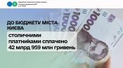 За січень – вересень цього року платники податків столиці перерахували до бюджету міста Києва 42 млрд 959 млн грн податків, зборів та обов’язкових платежів. Порівняно з аналогічним періодом минулого року надходження зросли на 12 % або на 4 млрд 617 млн гривень.