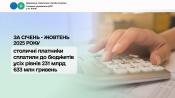 У січні – жовтні 2025 року до державного бюджету надійшло 183 млрд 241 млн грн, що на 28 %, або на 40 млрд 169 млн грн більше, ніж упродовж січня – жовтня 2024 року.