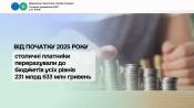 З початку 2025 року столичні платники перерахували до бюджету м. Києва 48 млрд 392 млн гривень. Порівняно з січнем – жовтнем 2024 року надходження зросли на 11 %, додатково надійшло 4 млрд 708 млн гривень.