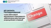 Згідно вимог порядків реєстрації та застосування реєстраторів розрахункових операцій, що застосовуються для реєстрації реєстраторів розрахункових операцій за товари (послуги) (далі – РРО)/реєстрації та застосування реєстраторів розрахункових операцій, що застосовуються для реєстрації операцій з торгівлі валютними цінностями в готівковій формі (далі – РРОВ), затверджених наказом Міністерства фінансів України від 14.06.2016 № 547, у разі зміни даних щодо РРО/РРОВ, зокрема, версії внутрішнього програмного забезпечення РРО/РРОВ, які зазначаються в реєстраційному посвідченні, суб'єкт господарювання або представник суб'єкта господарювання протягом п'яти робочих днів, що настають за днем, коли виникли зміни, подає до контролюючого органу за місцем реєстрації РРО/РРОВ: