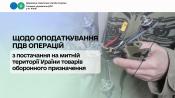 Підпунктом 4 пункту 32 підрозділу 2 розділу XX Кодексу визначено, що тимчасово, на період проведення антитерористичної операції та/або здійснення заходів із забезпечення національної безпеки і оборони, відсічі і стримування збройної агресії російської федерації, та/або запровадження воєнного стану відповідно до законодавства, звільняються від оподаткування ПДВ операції з ввезення на митну територію України та постачання на митній території України товарів оборонного призначення, визначених такими згідно з пунктом 29 частини першої статті 1 Закону № 808, що класифікуються за групами, товарними позиціями та підкатегоріями УКТ ЗЕД, перерахованими в абзацах «а» – «н» такого підпункту.