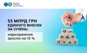За перший місяць поточного року надходження єдиного внеску на загальнообов’язкове державне соціальне страхування склали 53 млрд грн.