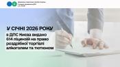 За січень 2026 року столичною податковою видано суб’єктам господарювання міста Києва 614 ліцензій на право роздрібної торгівлі алкогольними напоями та тютюновими виробами. З цієї кількості 335 ліцензій – на право роздрібної торгівлі алкоголем, а 279 – тютюновими виробами.