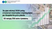 У січні – лютому 2026 року платники податків міста Києва сплатили до бюджетів усіх рівнів 50 млрд 356 млн гривень. Це на 15 відсотків, або на 6 млрд 492 млн грн більше порівняно з відповідним періодом минулого року.