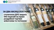 Упродовж лютого 2026 року столичні підприємці отримали 326 ліцензій, у тому числі: на роздрібну торгівлю алкоголем – 198 ліцензій; на роздрібну торгівлю тютюновими виробами – 128 ліцензій.