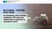За підсумками січня – лютого 2026 року бюджет столиці отримав 927 млн грн земельного податку та орендної плати. Це на 57 млн грн, або на 7 % більше, ніж упродовж січня – лютого 2025 року.