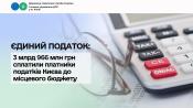 За підсумками двох місяців 2026 року до бюджету міста Києва надійшло 3 млрд 966 млн грн єдиного податку, що на 329 млн грн, або на 9 % більше, ніж за аналогічний період 2025 року.